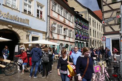 Nach einem guten Frühstück wurden wir am nächsten Morgen von unserer Stadtführerin Frau Hofmann am Hotel abgeholt. Bamberg wurde im 2.Weltkrieg nicht bombardiert, so dass viele historische Gebäude aus dem Mittelalter erhalten geblieben sind. Deshalb gehört die Innenstadt von Bamberg auch zum Weltkulturerbe der UNESCO.