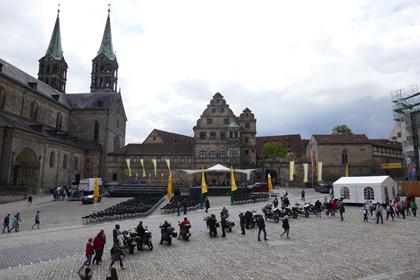 Unsere Stadtführung endete im Rosengarten nahe Dom und Residenz. Nach einer kleinen Kaffeepause wurde die Residenz besichtigt. Wer noch nicht genügend Kultur hatte, ging noch in den Bamberger Dom. Im Innern befinden sich neben dem Bamberger Reiter das Grab des einzigen heilig gesprochenen Kaiserpaares Heinrich und Kunigunde sowie das einzige Papstgrab in Deutschland und nördlich der Alpen.